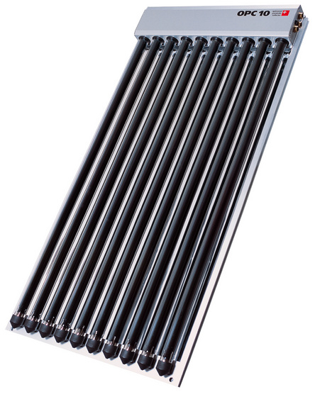 - kolektory próżniowe – budowane są ze szklanych rur. W każdej rurze znajduje się miedziana rurka z substancją odprowadzająca ciepło. Kolektory rurowe – próżniowe ,cechują się zmniejszonymi stratami ciepła do otoczenia i wychwytywaniem nawet niewielkiego promieniowania słonecznego.